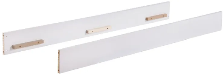 Mit diesen Umbauseiten im 2er Set in Weiß wird aus dem Kinderbett im Handumdrehen ein Juniorbett. Die beiden Leisten aus Holznachbildung sind 140 cm lang und mit je drei Montagestegen zum Befestigen ausgestattet.