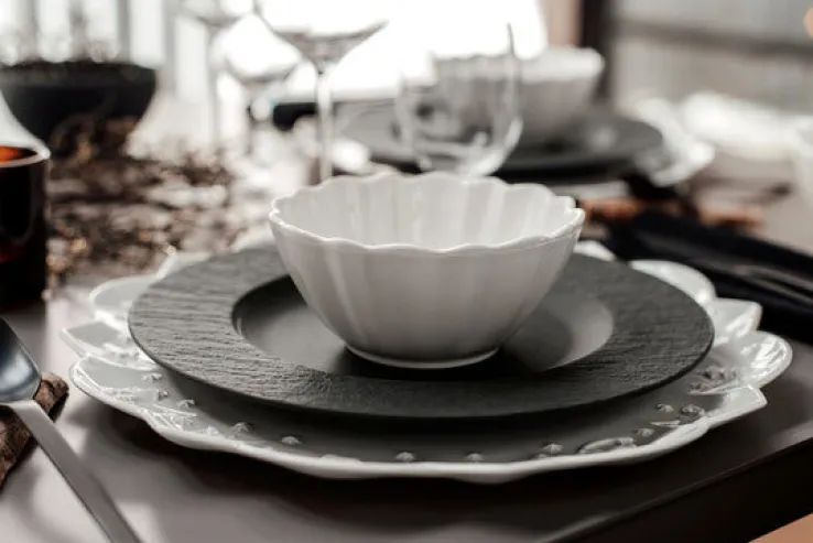 Der flache Teller MANUFACTURE ROCK von Villeroy & Boch ist ein sehr edles Geschirrstück mit einem auffallend gestalteten Rand. Der elegante dunkle Farbton setzt dekorative Akzente auf jedem Esstisch. Er lässt sich kombinieren mit weißem Geschirr, bildet aber auch einen hübschen Kontrast zu bunten Farbtönen. Der 2 cm hohe Teller eignet sich sehr gut zum dekorativen Anrichten von Vor- oder Nachspeisen. Auf dem dunklen Untergrund kommen diese besonders gut zur Geltung. Der Villeroy & Boch Teller MANUFACTURE ROCK ist mikrowellen- und spülmaschinengeeignet und damit ein praktisches Geschirrstück, das nicht viel Arbeit macht. #porta #hüttenzauber #portamöbel #meinporta #portamoebel #olivegreen