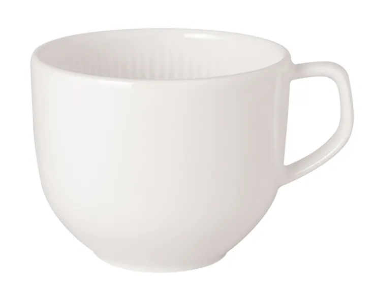 Das hochwertige weiße Porzellan der Villeroy & Boch AFINA Kaffeetasse setzt auf liebevolle und filigran umgesetzte Details, wie beispielsweise den asymmetrisch geschwungenen Griff oder die feine Riffelstruktur an der Innenseite. Spülmaschinenfest ist die Tasse, dank des Premium-Porzellans, ebenfalls. Sogar in der Mikrowelle fühlt sie sich anstandslos wohl.