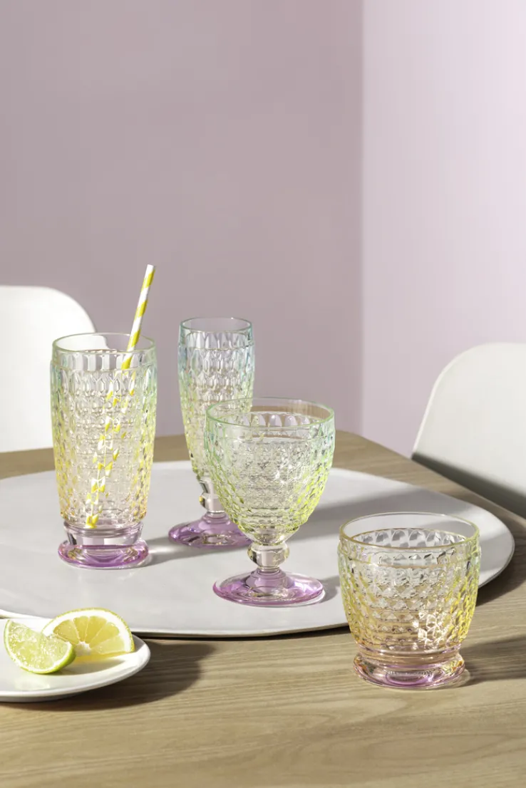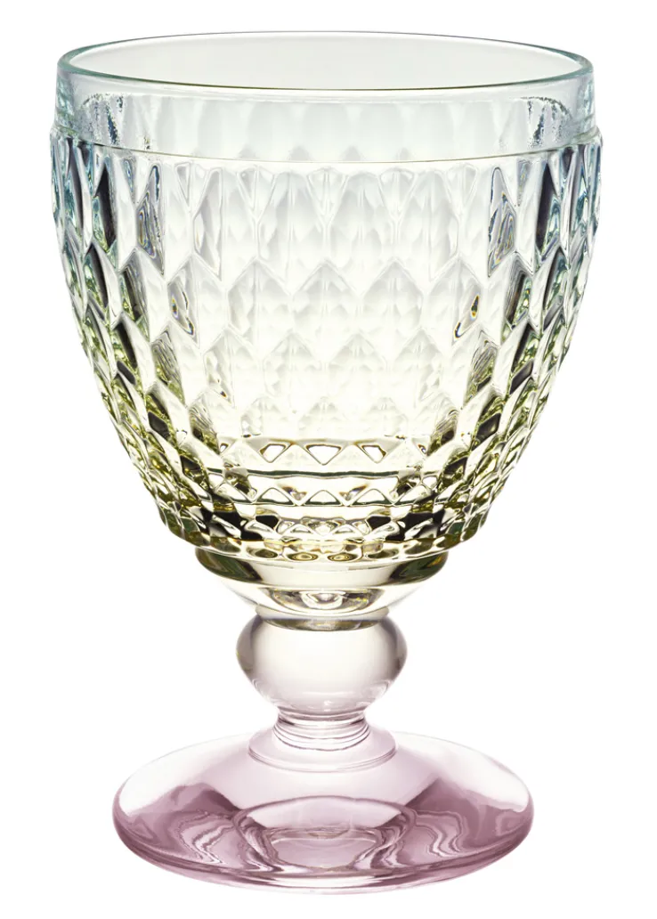 Optisch überzeugt das Glas durch seine transparente, klare Farbgebung, die durch die facettierte Struktur des Kristallglases besonders zur Geltung kommt. Der Fuß des Glases zeigt einen zarten rosa Farbton, der dem Design eine besondere Note verleiht. Diese Kombination aus Form und Farbe macht das Glas zu einem stilvollen Begleiter für besondere Anlässe.