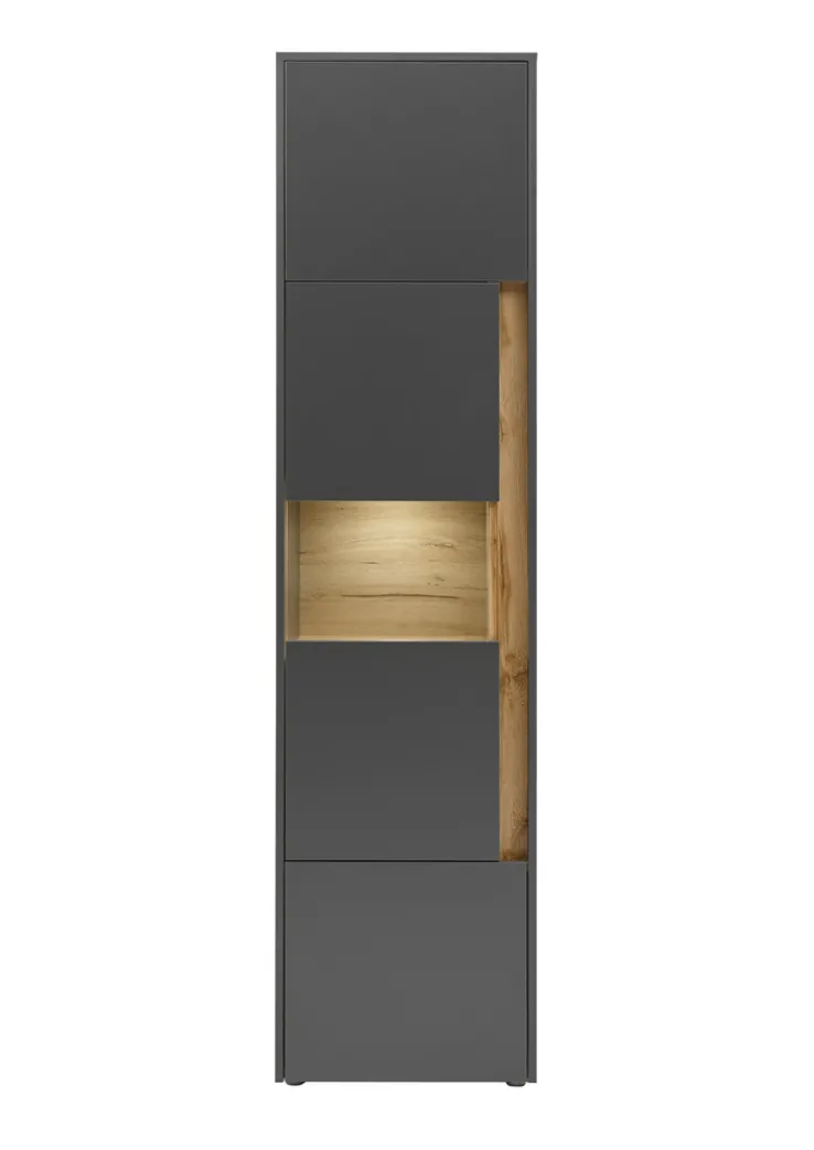 Die Vitrine CITY bietet zeitlose Eleganz auf engstem Raum und überzeugt in der weißen und braunen Farbe mit den Maßen 50 x 200 cm. Die schmale Vitrine bietet insgesamt fünf Staufächer hinter ihren elegant geschnittenen Türen und bietet zudem die Möglichkeit den Innenraum indirekt zu beleuchten.