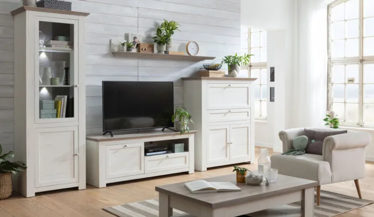 Vitrine ISADORA 78 x 208 cm weiß/ braun