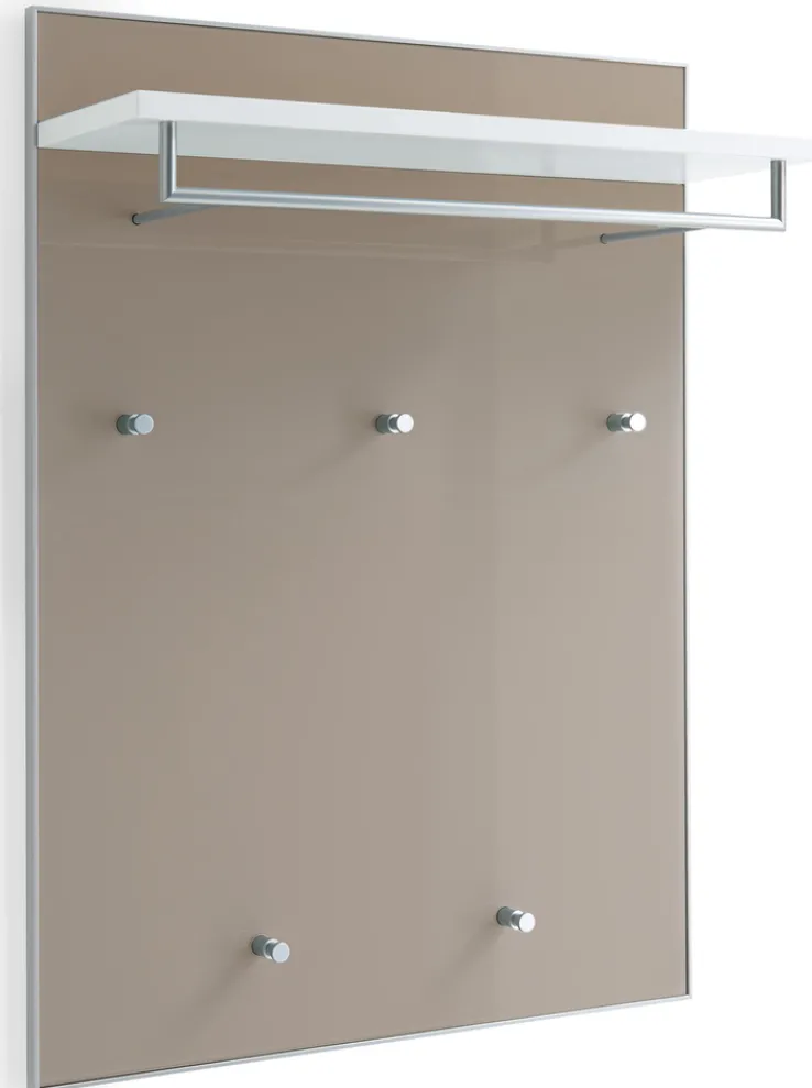 Das Garderobenpaneel SANTINA von VOSS präsentiert modernes Design und stellt Ihnen alle Features in Option, die Sie von einem zeitgemäßen Dielenmöbel erwarten. Mit in Weiß lackiertem Korpus und einer Glasfront im Farbton Taupe fügt sich das Möbelstück mühelos in zahlreiche Flurausstattungen ein.