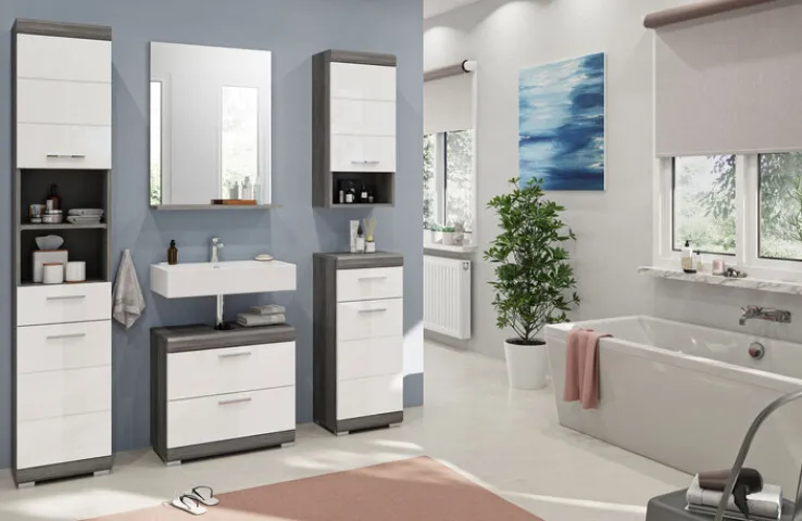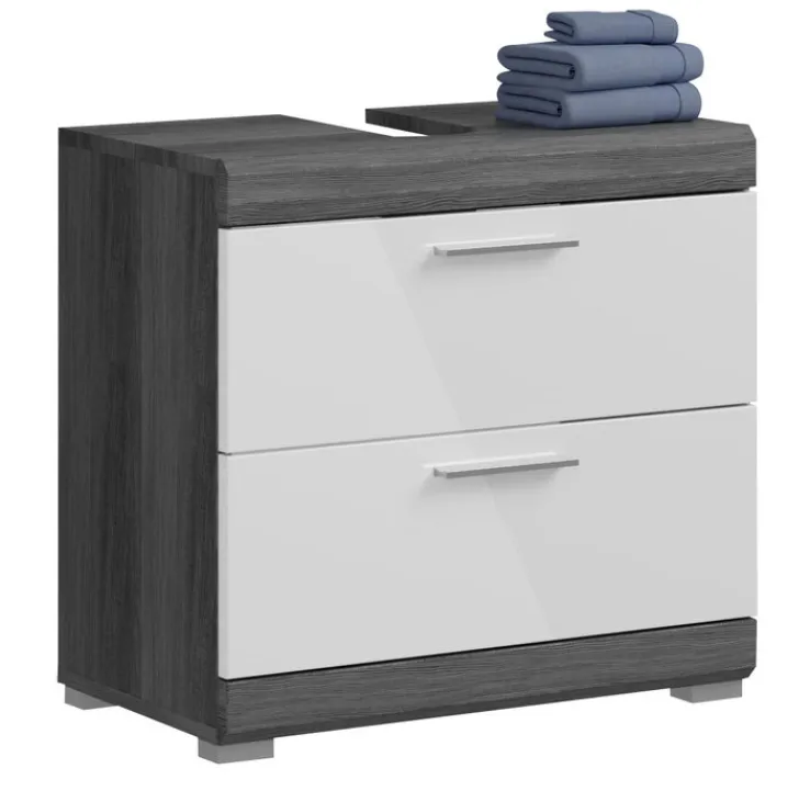 Waschbeckenunterschrank SCOUT 60 x 56 cm grau/ weiß Hochglanz