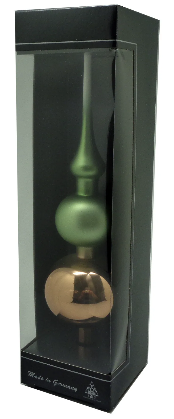 Diese kunstvoll gestaltete Doppelspitze mit einer Höhe von 31 cm ist ein dekoratives Highlight. Diese wunderschöne Baumspitze bringt Glanz und Gloria in das Zuhause und schafft eine Atmosphäre voller Freude und Wärme zur festlichen Weihnachtszeit.