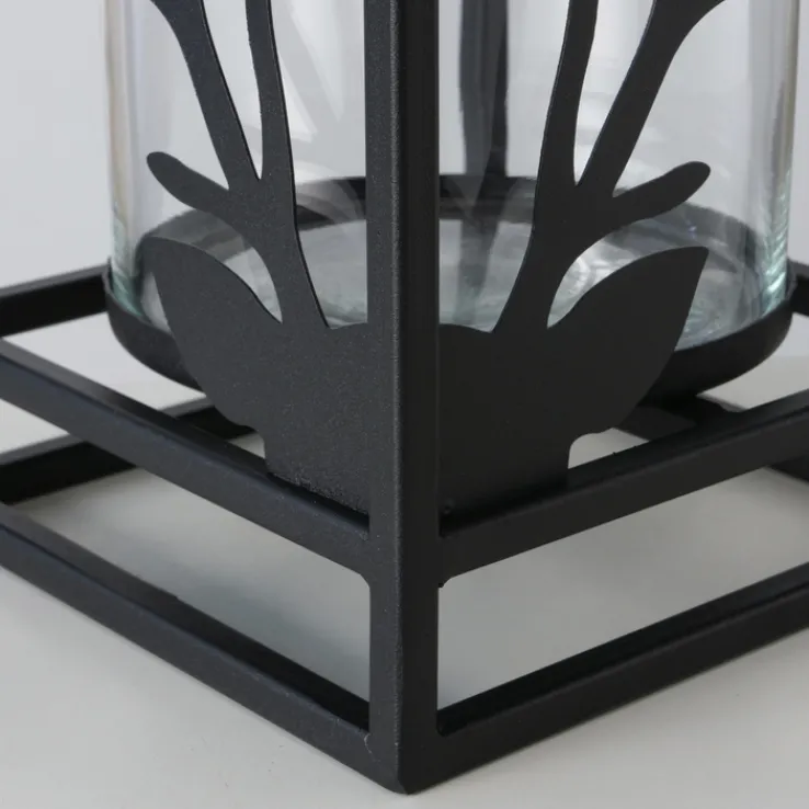 Der Glaszylinder im Inneren des Windlichts bietet Platz für Kerzen und sorgt für eine stimmungsvolle Beleuchtung. Die dekorativen Elemente in Form von Zweigen, die den Glaszylinder umgeben, verleihen dem Windlicht eine besondere Note und machen es zu einem Blickfang in jedem Raum. Das robuste Material aus Eisen garantiert eine lange Lebensdauer und Stabilität. Dieses Windlicht ist eine ideale Ergänzung für moderne und stilvolle Wohnkonzepte.