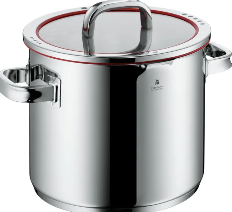 Der elegant gestaltete WMF Topf FUNCTION aus Edelstahl ist das ideale Kochgerät für die Zubereitung von großen Mengen. Mit einem Fassungsvermögen von etwa 8800 ml eignet sich der Topf für Suppen, Eintöpfe und Gemüse. Auch das Kochen von Spaghetti ist durch den hohen Rand des Topfs problemlos möglich. Durch den speziell einstellbaren Deckel ist auch das wasserarme Garen von Speisen möglich.