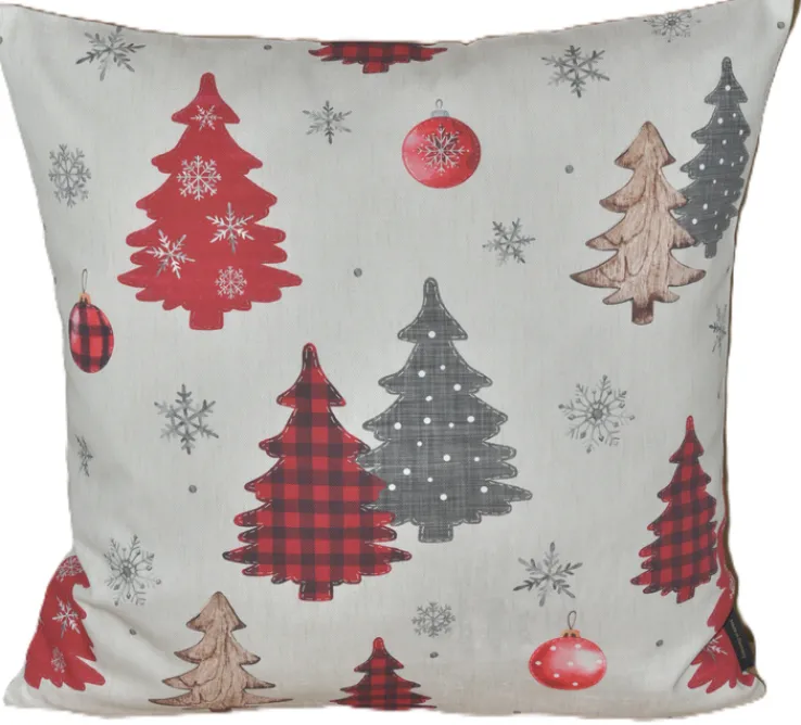 Die Kissenhülle „Waldzauber“ von Yve Decoration bringt festliche Stimmung in Ihr Zuhause. Mit einer Größe von 50 x 50 cm ist es ideal für Sofas oder Sessel geeignet. Der Bezug besteht aus 100 % Baumwolle, einer hochwertigen Naturfaser, die für ihre Weichheit und Langlebigkeit bekannt ist. Ein praktischer Reißverschluss ermöglicht ein einfaches Abnehmen und Reinigen des Bezugs. Das Design des Kissens ist klassisch und weihnachtlich. Auf einem neutralen Hintergrund sind rote und graue Tannenbäume sowie Schneeflocken und Weihnachtskugeln abgebildet. Die Hauptfarbe ist ein festliches Weihnachtsrot, das perfekt zur winterlichen Dekoration passt. Die Kombination aus karierten und gepunkteten Mustern verleiht dem Kissen einen charmanten, rustikalen Look, der sich harmonisch in verschiedene Einrichtungsstile einfügt.