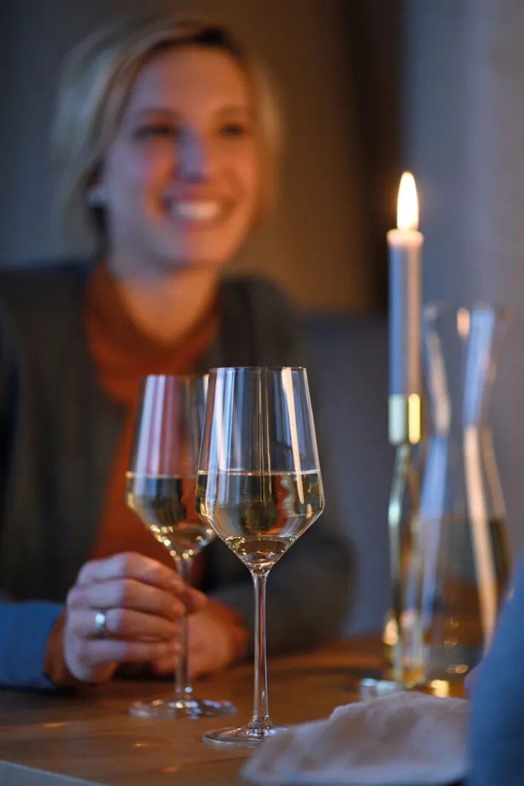 Das ZWIESEL GLAS Weißweinglas PURE bietet ein Volumen von 408 ml und zeigt sich in einem stilvollen, transparenten Design, sodass es sich vielseitig kombinieren lässt und einen zeitlosen Charme versprüht.