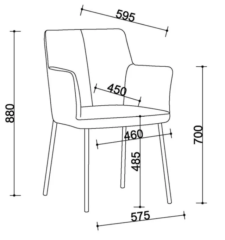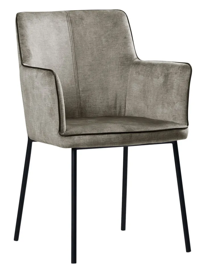 Der gemütliche Armlehnstuhl ist mit einem robustem Vierfußgestell aus schwarzem Metall gestaltet, das sowohl pulverbeschichtet als auch geschliffen ist. Der Bezug der Sitzfläche, der Rückenlehne und der Armlehnen besteht aus strapazierfähigem Polyester. Dieses robuste Synthetikmaterial ist leicht zu pflegen. Die Sitzfläche ist mit einer Breite von 57 Zentimetern und einer Tiefe von 60 Zentimetern bei einer Höhe von 48 Zentimetern sehr bequem.