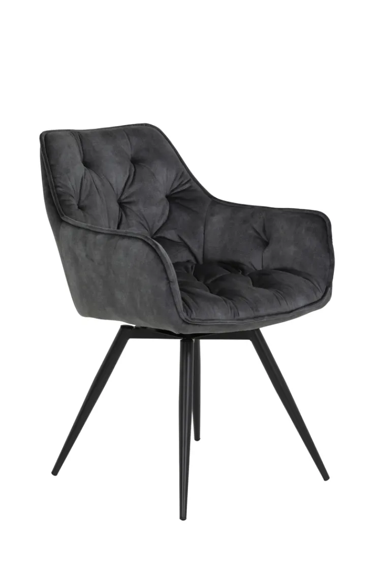 Der Sitz ist mit einem weichen Samtvelour bezogen und strahlt mit Kissensteppung an Sitz- und Rückenlehne klassische Eleganz aus. Zugleich bietet er einen komfortablen Sitz. Doch das ist nicht alles! Die Sitzschale ist zudem um 360° drehbar, wodurch das Aufstehen vom Tisch ganz ohne ein Verstellen des Stuhls möglich ist.