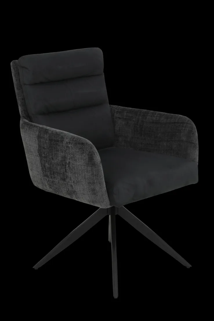 Der Bezug ist strapazierfähig und pflegeleicht. Das konische Vierfußgestell aus Metall mit Pulverbeschichtung in Schwarz sorgt für Stabilität und eine moderne Optik.Der Komfortsitz mit Federkorb, ein angenähtes Kissen im Rücken und die Armlehnen ermöglichen eine entspannte Sitzposition._x005f_x000D_
