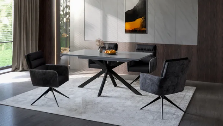 Der Armlehnstuhl LEANDRA im 2er-Set in Anthrazit kombiniert eine ansprechende Wildlederoptik innen und Webstoff außen zu einem eleganten Look._x005f_x000D_