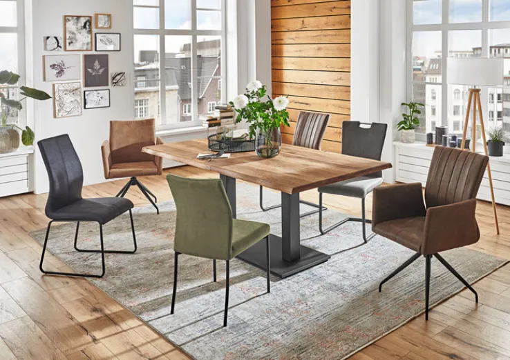 Der Stuhl besticht durch seine elegante braune Microfaser-Oberfläche, die aus 100 % Polyester besteht. Diese synthetische Faser sorgt für eine angenehme Haptik und ist pflegeleicht. Das Gestell aus pulverbeschichtetem Metall in Schwarz verleiht dem Stuhl Stabilität und einen modernen Look. Die drehbare Funktion und die festen Armlehnen erhöhen den Komfort und die Flexibilität im Alltag. Der Stuhl wird im praktischen 2er-Set angeboten, ideal für Esszimmer oder Büro.