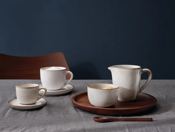 Ob Kaffee oder Tee, das ASA Milchkännchen SAISONS im hellen Sandweiß gehört auf dem ansprechend gedeckten Frühstückstisch immer dazu. Mit seiner zierlichen Tülle und dem hübsch gebogenen Henkel strahlt das gut 9 cm hohe Kännchen Grazie und Anmut aus. Rund 250 ml Milch oder Kaffeesahne lassen sich darin formschön anbieten.