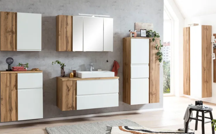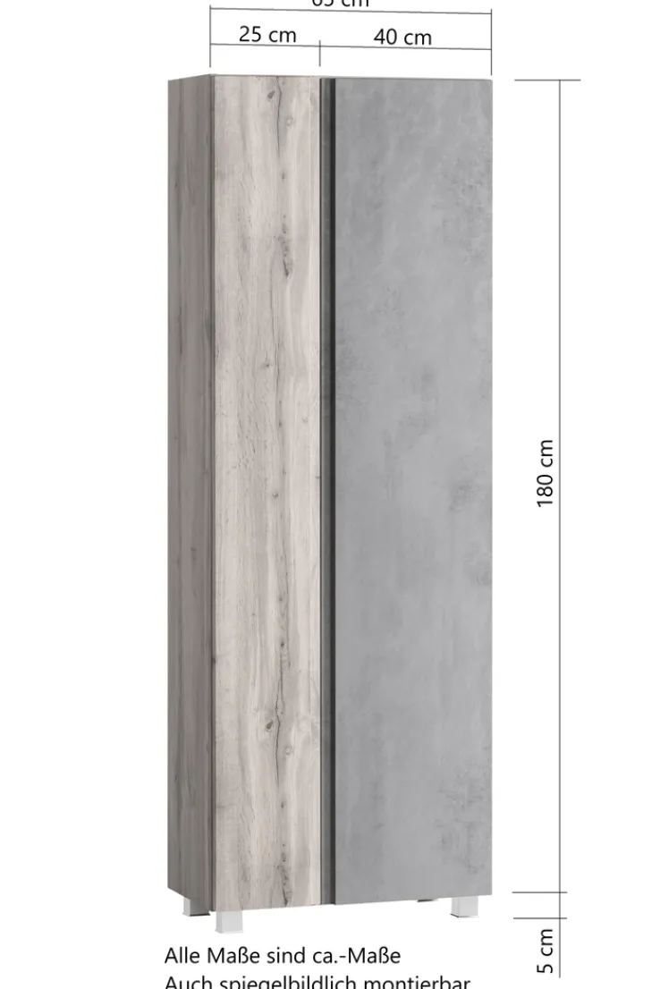 Bad-Seitenschrank GENT weiß/braun 65cm 2-türig
