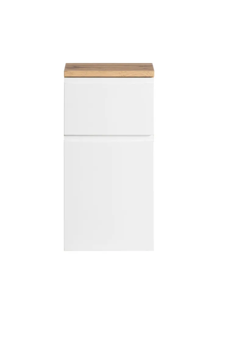 Der Bad-Unterschrank GENT in weiß/braun mit einer Breite von 40 cm bietet Ihnen die perfekte Lösung für die Organisation Ihrer Badutensilien. Mit seiner kompakten Größe ist er ideal für kleinere Badezimmer oder als Ergänzung zu einem größeren Waschtisch.* Der Unterschrank schafft zusätzlichen Stauraum und sorgt für Ordnung in Ihrem Badezimmer.