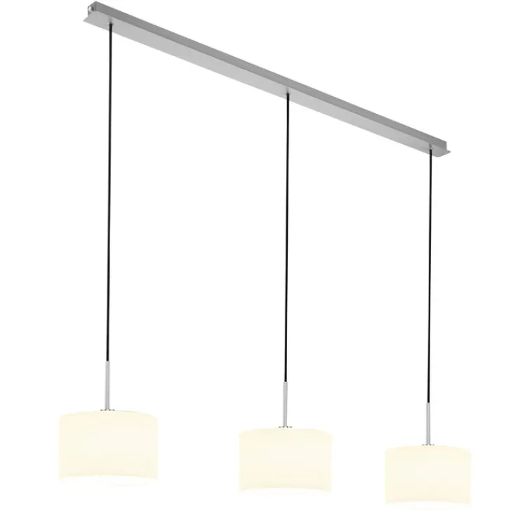 Das BANKAMP Retrofit Balkenpendel KARL75 ist 3-flammig. Die nickelfarbige Hängelampe wird ohne Leuchtmittel geliefert. Sie ist zudem höheneinstellbar von 50 bis 150 cm. Ihre Breite liegt bei 115 cm. Verarbeitet sind graues Metall und weißes Opalglas.