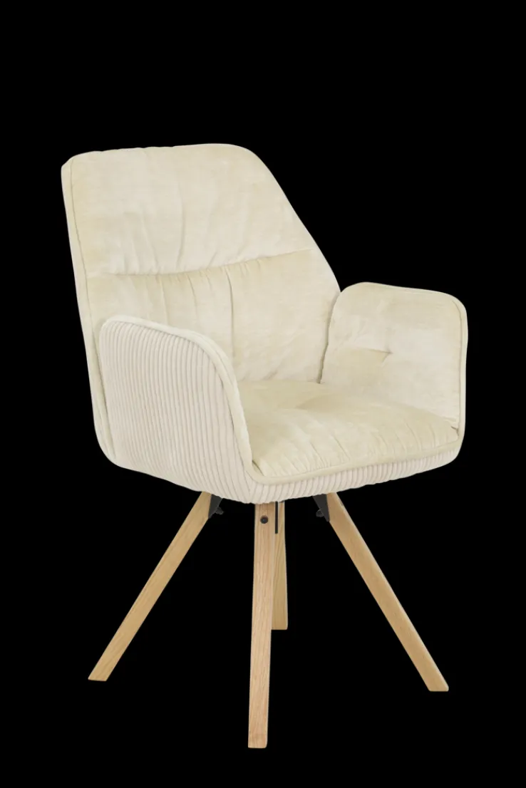 Der BEATRIX Armlehnstuhl im 2er-Set in Creme besticht durch sein stilvolles Design und hohen Komfort. Die Außenseite ist mit strapazierfähigem Breitcord bezogen und die Innenseite ist mit weichem Samtvelour ausgestattet.Das Vierfußgestell aus massivem Rubberwood-Holz sorgt für Stabilität und verleiht dem Stuhl eine natürliche Ästhetik. Die gepolsterte Sitzschale mit integrierten Armlehnen und eine 270°-Drehfunktion mit Auto-Return-Mechanismus bieten optimalen Sitzkomfort und erleichtern das Aufstehen._x005f_x000D_