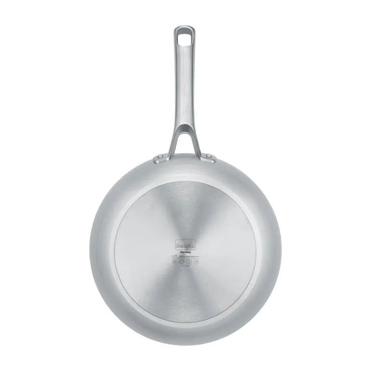 Die Bratpfanne der Serie B.FREE von Berndes überzeugt durch ihr elegantes Design und ihre Funktionalität. Mit einem Durchmesser von 28 cm und einer Höhe von 5,5 cm bietet sie ausreichend Platz für vielfältige Kochanwendungen. Die Pfanne besteht aus hochwertigem Aluminium und Edelstahl, was für eine gleichmäßige Wärmeverteilung sorgt. Die polierte Oberfläche verleiht der Pfanne ein modernes, silberfarbenes Aussehen, das in jeder Küche stilvoll wirkt.