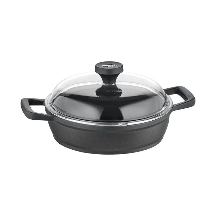 Die Berndes Servierpfanne EDITION 100 in Schwarz hat einen Durchmesser von 28 cm und zieht mit ihrem stylischen Look Blicke auf sich. Sie kommt gemeinsam mit einem Deckel in die Küche und macht auch beim Servieren auf dem Tisch eine gute Figur.