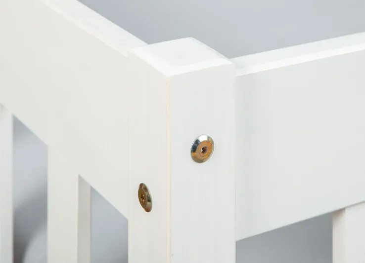 Das Bett LUCIAN aus weiß lackierter Massivholz-Kiefer misst 90 x 200 cm und bietet Kindern damit ausreichend Platz für erholsame Stunden. Maximal mit 80 kg belastbar, eignet sich das Bett auch für angehende Jugendliche. Die zeitlose, gradlinige Optik und das weiß lackierte Kiefernholz sorgen für einen skandinavischen Hauch im Kinderzimmer.
