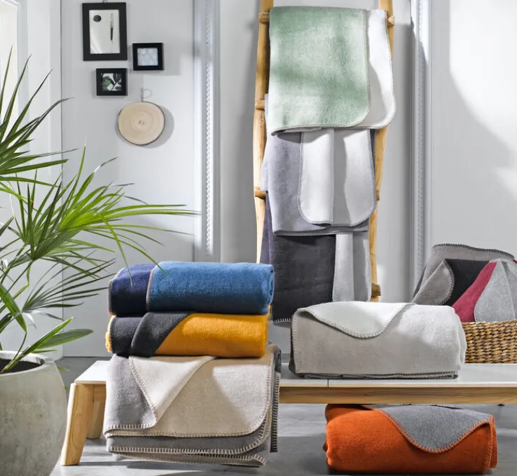 Das hochwertige Wende-Wohnplaid besteht aus einem strapazierfähigen Mischgewebe. Die Seiten und Kanten der Wohndecke sind mit sogenannten Overlookstichen verziert. Das verwendete Textil und die Farben sind mit dem Öko-Tex-Siegel ausgestattet. Das Wohnplaid ist bei 30 °C in der Maschine waschbar.