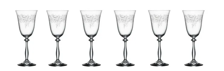 Die Trinkgläser ROMANCE von BOHEMIA SELECTION setzen Glanzpunkte auf jedem festlich gedeckten Tisch. Das feine Dekor findet sich bei allen Modellen der Serie, sodass die Gläser bei einem mehrgängigen Menü hervorragend kombiniert werden können. Ein pflegeleichtes und spülmaschinengeeignetes Glas für den vollendeten Genuss mit allen Sinnen.