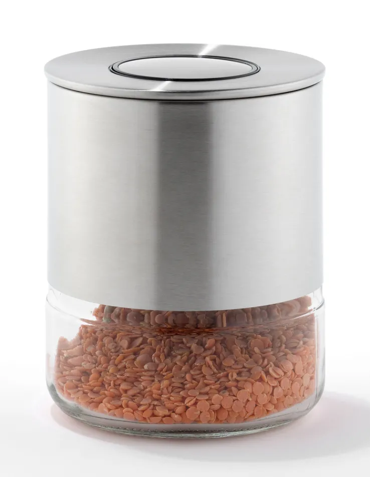 Diese zeitlos schöne Vorratsglas von bongusto fasst 440 ml. Der dicht schließende Deckel aus Edelstahl bildet einen überzeugenden Kontrast.