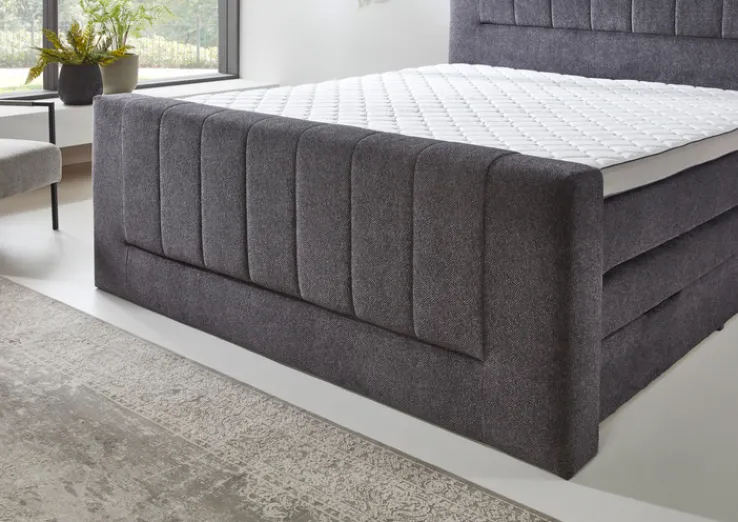 Das Boxspringbett KENOSHA bietet mit seiner großzügigen Liegefläche von 180 x 200 cm höchsten Schlafkomfort. Der anthrazitfarbene Textilbezug verleiht dem Bett eine elegante und zeitlose Optik, die sich nahtlos in verschiedene Einrichtungsstile einfügt. Das Kopfteil mit einer Höhe von 118 cm und die gepolsterte Struktur sorgen für zusätzlichen Komfort und eine ansprechende Ästhetik. Ausgestattet mit zwei Bettkästen bietet das Bett praktischen Stauraum für Bettwäsche oder andere Utensilien. Die Kombination aus Bonellfederkern, Taschenfederkern und einem Kaltschaum-Topper gewährleistet eine optimale Unterstützung und Anpassung an den Körper. Mit den Härtegraden 3 und 4 sowie sieben Matratzenzonen wird eine individuelle Anpassung an die Schlafbedürfnisse ermöglicht. Das Bett misst 188 cm in der Breite und 234 cm in der Länge.
