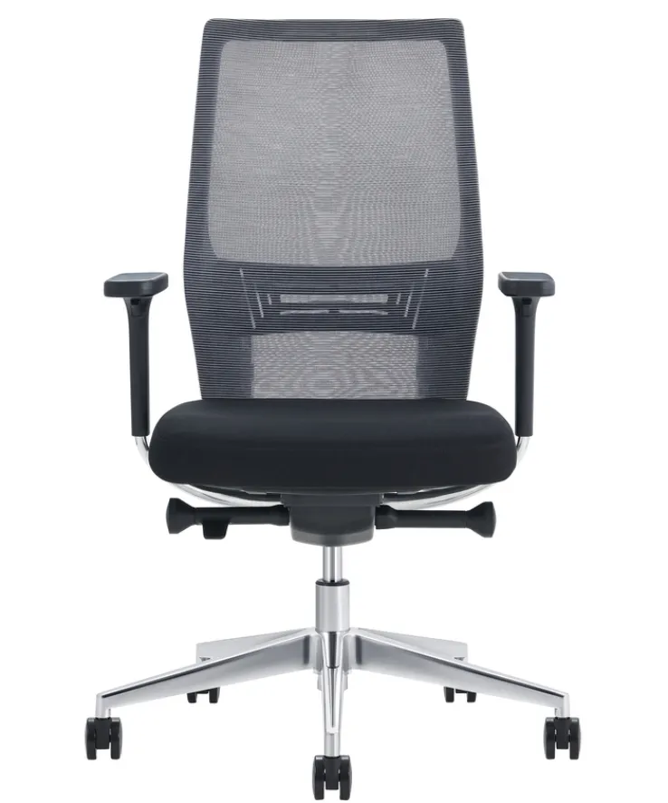 Beide Armlehnen an diesem Bürostuhl bieten Bequemlichkeit. Ohne die Armfreiheit einzuschränken. Der Rücken wird im Sitzen gut von hinten durch das Netz belüftet. So ist ermüdungsarmes Arbeiten im Büro oder Homeoffice gewährleistet. Dies wird auch von der besonders hohen und breiten, teilflexiblen Rückenlehne unterstützt. Geliefert wird das Modell in vormontierten Teilen. Am Ort der Nutzung ist es mit wenigen Handgriffen einsatzbereit. Im verstellbaren Stuhlbein befindet sich eine Druckfeder.