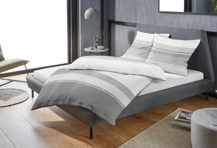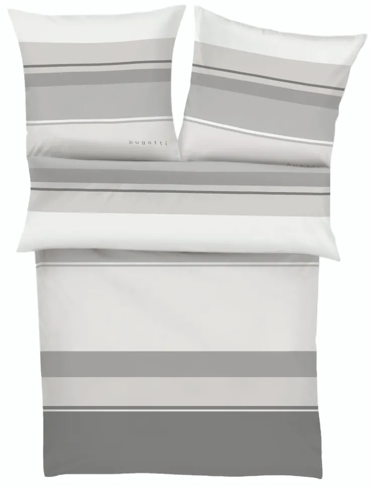 Mit der 135 x 200 cm großen bugatti Satin-Bettwäsche in Grau erstrahlt das Schlafzimmer im Nu in einem stilvollen, modernen Ambiente. Die Bettwäsche für jede Jahreszeit besticht jedoch nicht alleine mit ihrem Streifendesign, sie fühlt sich zudem herrlich weich auf der Haut an und sorgt für einen hohen Schlafkomfort.