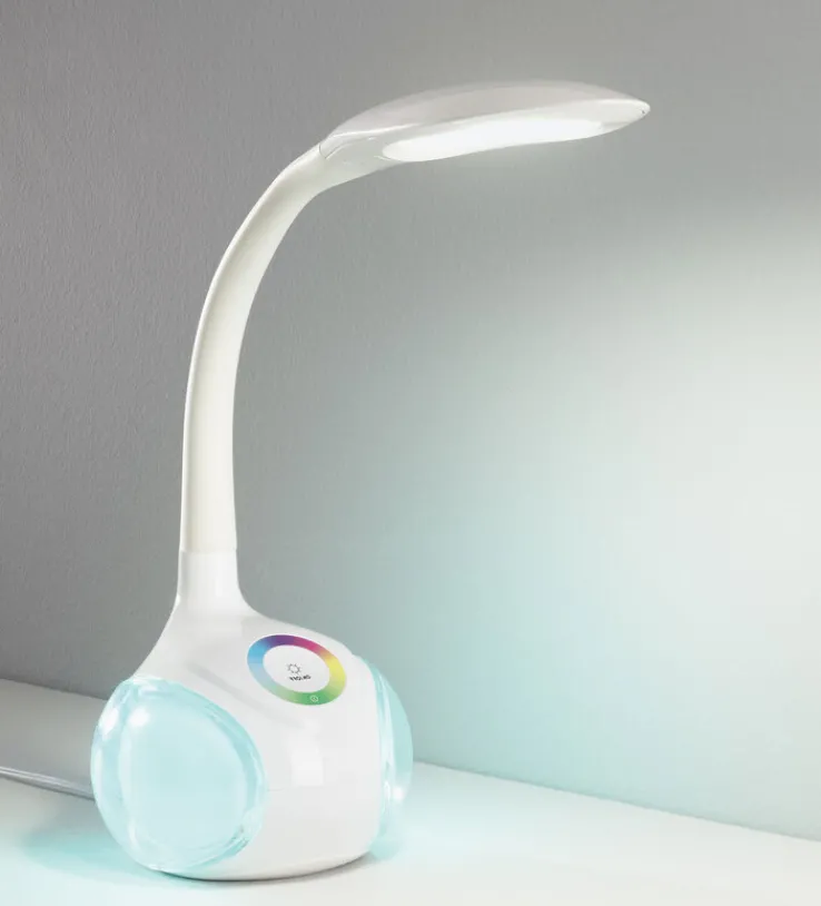 Die casaNOVA LED Schreibtischlampe vereint Funktionalität und modernes Design. Mit einer Höhe von 51 cm und einer Breite von 11,5 cm passt sie perfekt auf jeden Schreibtisch. Die Lampe ist aus robustem Kunststoff gefertigt und in einem eleganten Weiß gehalten, das sich nahtlos in jede Umgebung einfügt. Ausgestattet mit einer fest eingebauten LED, bietet die Lampe eine Lichtleistung von 440 Lumen bei einem Energieverbrauch von nur 9 Watt. Die Farbtemperatur von 5.000 K sorgt für ein klares, angenehmes Licht, ideal zum Arbeiten oder Lesen. Dank der Dimmfunktion und des integrierten RGB-Farbwechslers lässt sich die Beleuchtung individuell anpassen. Die Schutzklasse 3 und die Schutzart IP20 garantieren Sicherheit und Langlebigkeit. Die Lampe verfügt über ein intuitives Touch-Bedienfeld, das eine einfache Steuerung ermöglicht.