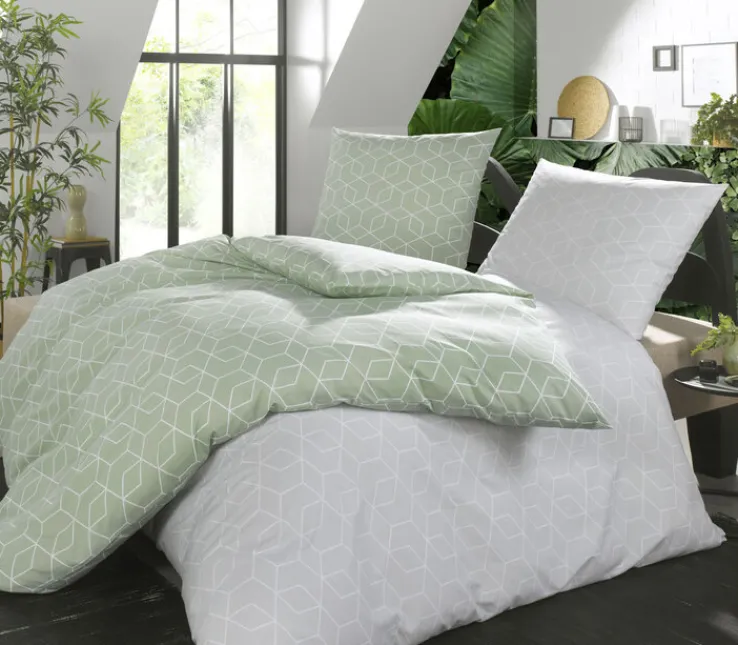 Die casaNOVA Renforcé-Bettwäsche GABY in Grün hat eine Größe von 135 x 200 cm und harmoniert mit ihrem stylischen, grafischen Muster perfekt mit modernen Schlafzimmermöbeln.