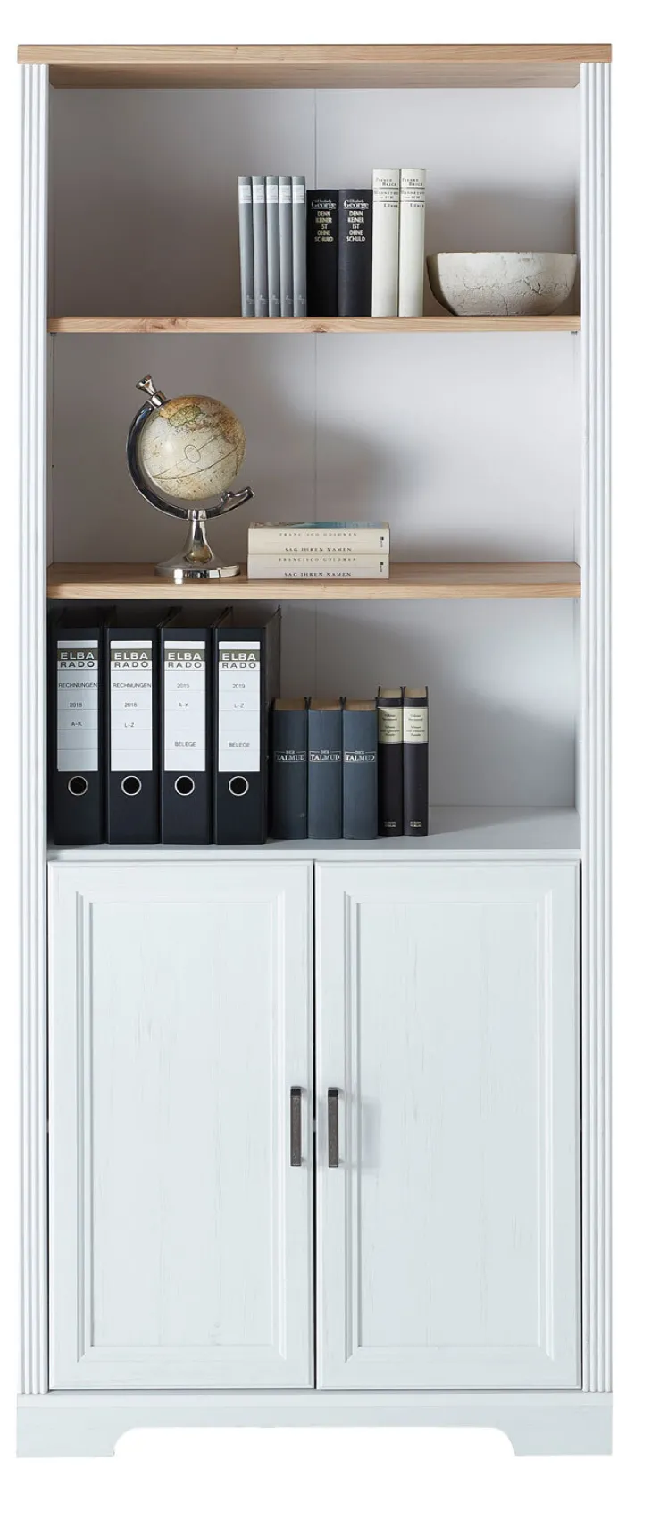 Der Aktenschrank JASMIN von CASAVANTI eignet sich perfekt zur Aufbewahrung von Büroutensilien und Aktenordnern. Mit seinem ansprechenden Design passt er zu vielen Einrichtungsstilen. Gefertigt ist er aus einem robusten Holzwerkstoff in Pinie hell Optik. Die zwei Einlegeböden im Regalteil und die Oberplatte sind in einem Artisan Eiche Holzdekor abgesetzt. Der Büroschrank bietet nicht nur Stauraum in Regalfächern, sondern auch hinter Drehtüren. Hier befindet sich ein weiterer Einlegeboden.