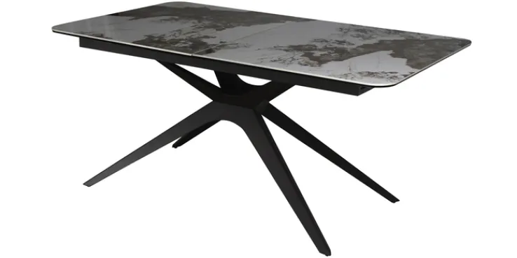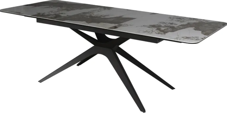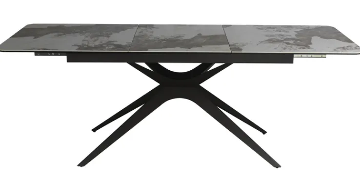 Ob ausgezogen oder in den Standardmaßen – der Esstisch MIRO bietet vielen Personen Platz und ist vielseitig einsetzbar. Auf dem grau-pulverbeschichtetem Vierfußgestell ruht eine extravagante Tischplatte aus 8 mm schwarzem gehärtetem Glas und 5 mm chinesischer Pandora-Keramik mit interessanter Farbnuance-Optik. Der moderne Industrial-Look passt zu vielen Einrichtungsstilen und ist mit verschiedensten Stühlen kombinierbar.