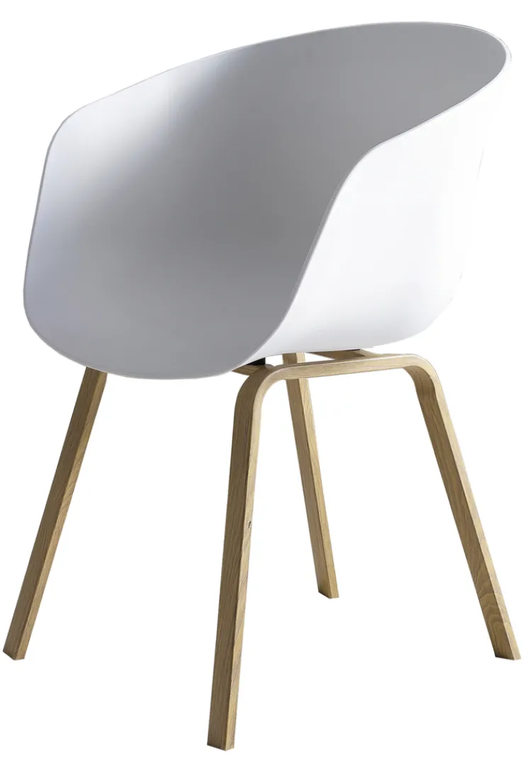 Der moderne CASAVANTI Esszimmerstuhl hat eine Größe von 54,5 x 77,5 x 54 cm und basiert auf einem soliden Vierfußgestell aus Metall, das ihm eine hohe Belastbarkeit von bis zu 120 kg verleiht. Seine Metallbeine in Holzoptik kombiniert der Stuhl mit einer ergonomisch geformten Sitzschale aus weißem Kunststoff. Diese ist mit festen Armlehnen ausgestattet, die den Sitzkomfort weiter erhöhen und zugleich das Aufstehen vom Tisch erleichtern.