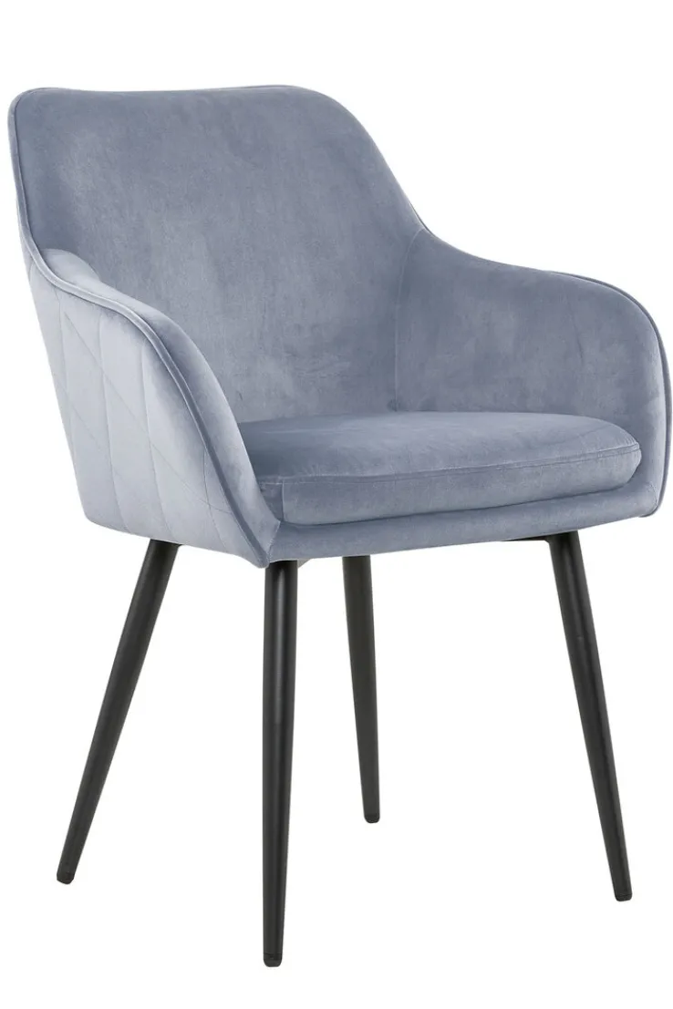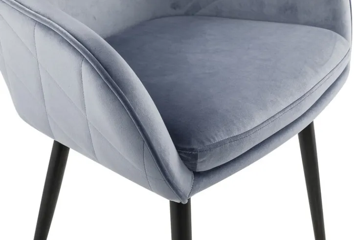 Dieser Stuhl ist im modernen Design gehalten und weist eine Breite von 61 cm, eine Höhe von 85 cm sowie eine Tiefe von 60 cm auf. Er ist dank seines kreativen Kontrastes aus pulverbeschichtetem Metallgestell in schwarzer Farbe sowie grauem Textilbezuges ein Hingucker in jedem Esszimmer. Darüber hinaus gefällt der Stuhl auch durch seine festen Armlehnen, die ihm eine besondere Form verleihen und zudem dafür sorgen, dass man sehr bequem sitzt.