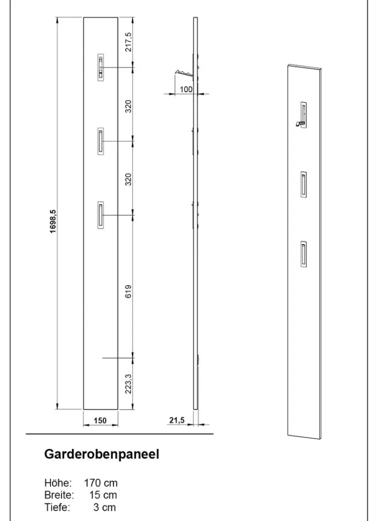 Breite: 15 cmHöhe: 170 cmTiefe/Ausladung: 3 cm