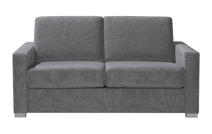 Dieses Schlafsofa misst als Sofa 168 x 97 cm und bietet einen schönen Stoffbezug in Grau. Wird es ausgezogen, zeigt sich eine Liegefläche von 130 x 200 cm.