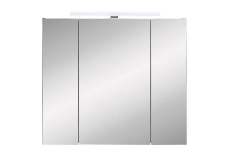 Der praktische CASAVANTI Spiegelschrank hat die Maße 80 x 71-75 x 16 cm und ist ein Badmöbelstück in einem modernen Design. Durch die Fronten in Glas und die Farbe grau hat der 3-türige Spiegelschrank mit LED Beleuchtung eine geradlinige Optik. Hinter den großen grifflosen Türen findet sich ein großzügiger Stauraum auf mehreren Ebenen, der viel Platz für Kosmetik, Hygieneartikel und andere Badutensilien bietet.