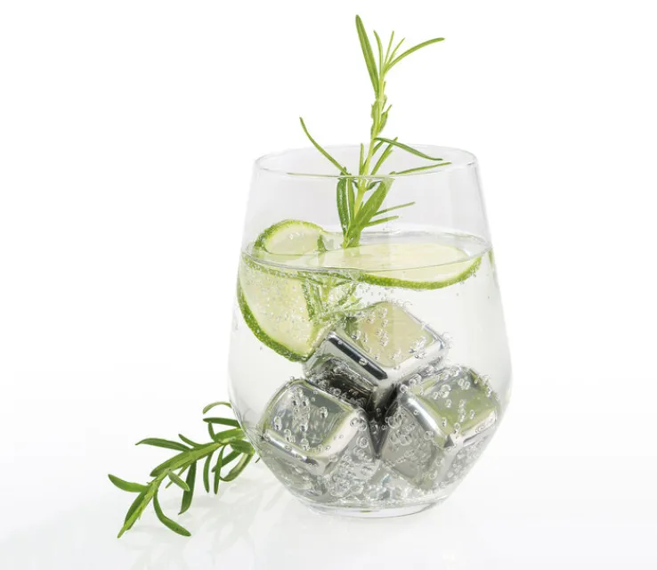 Mit dem 5-teiligen cilio Kühlwürfel Set STEEL aus silberfarbigem Edelstahl lassen sich Cocktails und Softdrinks in den Sommermonaten gut kühlen, ganz ohne sie zu verwässern.