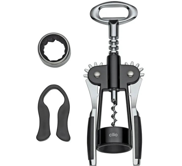 TOSCANA von cilio zeichnet sich durch ein apartes Design und eine hochwertige Verarbeitung aus. Das Wein-Set besteht aus rostfreiem Edelstahl und robustem Kunststoff. Es überzeugt mit einem hohen Bedienkomfort und lässt sich leicht reinigen. Da die Box eine vollendete Eleganz ausstrahlt, muss das Set bei Nichtgebrauch keineswegs versteckt werden. Stattdessen verdient es im Wohnzimmer, in der Küche oder im Esszimmer einen würdigen Platz. Die Maße betragen 26,0 x 16,5 x 6,0 cm.