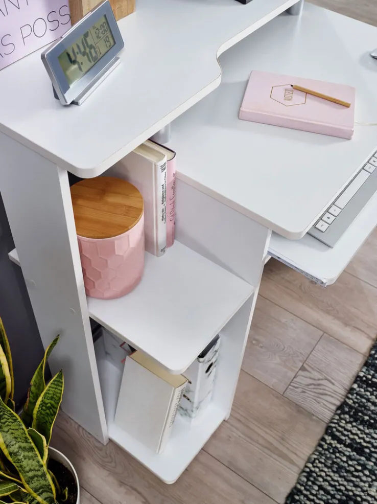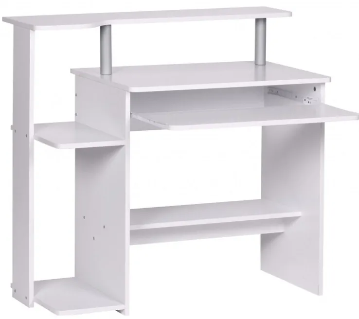 Der weiße Computertisch mit einer Arbeitsfläche von 94 x 48,5 cm ist perfekt für den Arbeitsbereich in der Wohnung geeignet. Auch im Jugendzimmer oder in der Studentenwohnung ermöglicht er bequemes Arbeiten am PC.