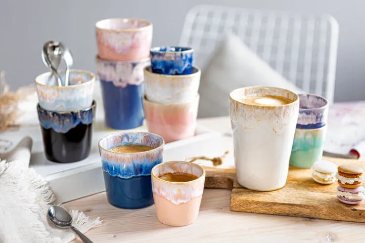 Der Becher aus feinem Feinsteinzeug ist handgefertigt und innen und außen aufwendig glasiert. Durch die attraktive Reaktiv-Glasur ist jeder Becher ein Einzelstück. Der Becher ist zum Aufwärmen in der Mikrowelle geeignet und ist spülmaschinenfest. #meinporta #portamöbel #colorfulliving