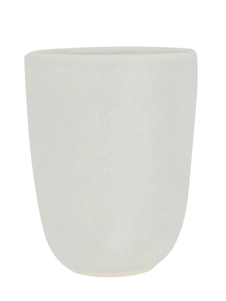Dieser Becher in Steingrau hat die Höhe von 10,5 cm und das Fassungsvermögen von 300 ml. Er ist Teil der Kollektion PIETRA von CreaTable Porzellan Haus.