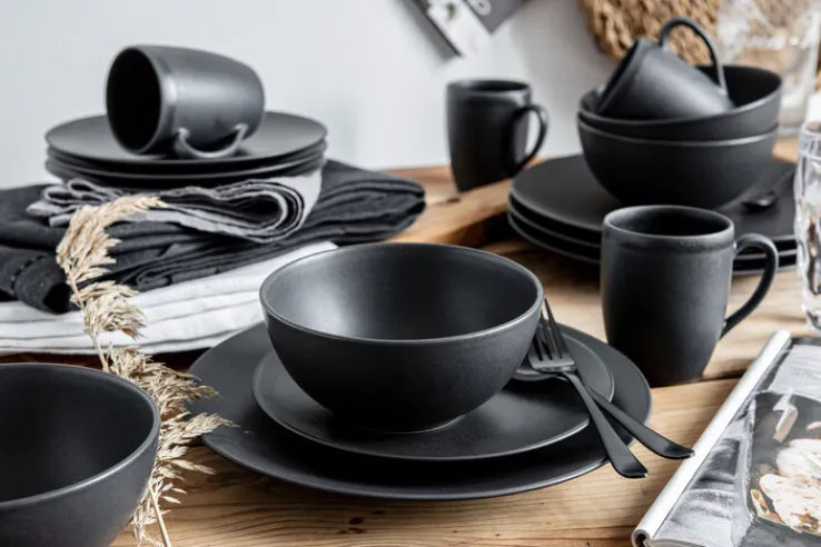 Das 16-teilige Kombiservice SOFT TOUCH BLACK von CreaTable ist aus robuster Keramik in Mattschwarz gefertigt. Dieses pflegeleichte Service für vier Personen ist mikrowellengeeignet und kann unkompliziert in der Spülmaschine gereinigt werden.