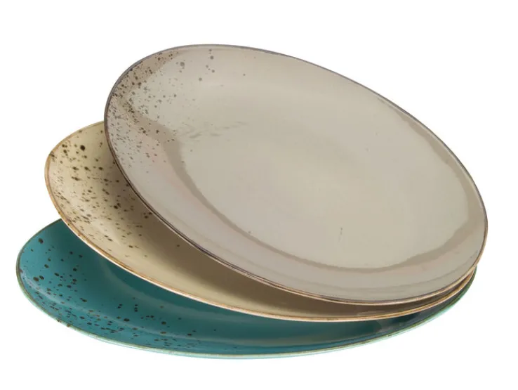 Obwohl die CreaTable Platte Nature Collection mit ihrer Ästhetik eigentlich ganz im Zeichen eines aktuellen Trends steht, zeichnet sich das Design durch eine sehr dezente Referenz an traditionelle, klassische Designs aus und wirkt damit überraschend zeitlos. Die etwa 35 x 25,2 cm große Platte hat durch ihren leicht nach oben gezogenen Rand eine Höhe von 3,5 cm. Durch das sehr wertige und durchaus stabile Material bringt es die hochwertige Steinzeug-Platte aus feinster Keramik auf ein gut in der Hand liegendes Gewicht von rund 1 kg. Die hauptsächlich in Türkisblau gestaltete CreaTable Platte Nature Collection wird am Rand von einer scheinbar zufälligen Anordnung dekorativer dunkler Sprenkel durchzogen.