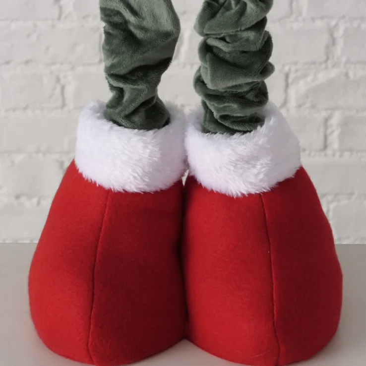 Das Deko-Objekt FIGUR BALTHASAR aus der Serien-Name PORTA hat eine Höhe von 130 cm, eine Länge von 35 cm und eine Breite von 13 cm. Das Gewicht beträgt 0,93 kg. Die Figur besteht aus einer Kombination von Metall, insbesondere Eisen, sowie Kunststoff, vorwiegend Polyester. Die Hauptfarbe ist mehrfarbig; das Design zeigt eine auffällige rote Zipfelmütze, einen weißen Bart, einen karierten Oberkörper in Rot, Grün und Beige mit zwei gelben Knöpfen, dunkelgrüne Arme sowie einen hellgrünen Körper. Die Beine sind schmal und grün, während die Füße in leuchtendem Rot gestaltet sind. Die Oberfläche wirkt weich und plüschig, was auf einen dekorativen Charakter hinweist. Die Figur eignet sich als dekoratives Element in der Winter- und Weihnachtszeit.