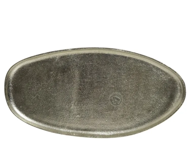 Das Dekotablett 18 x 38 cm Alu silberfarbig hat eine ovale Form und wirkt wie ein altes Erbstück. Es erinnert in seiner Farbgebung ein bisschen an Zinn und lässt sich wunderbar mit allen anderen Materialien kombinieren.